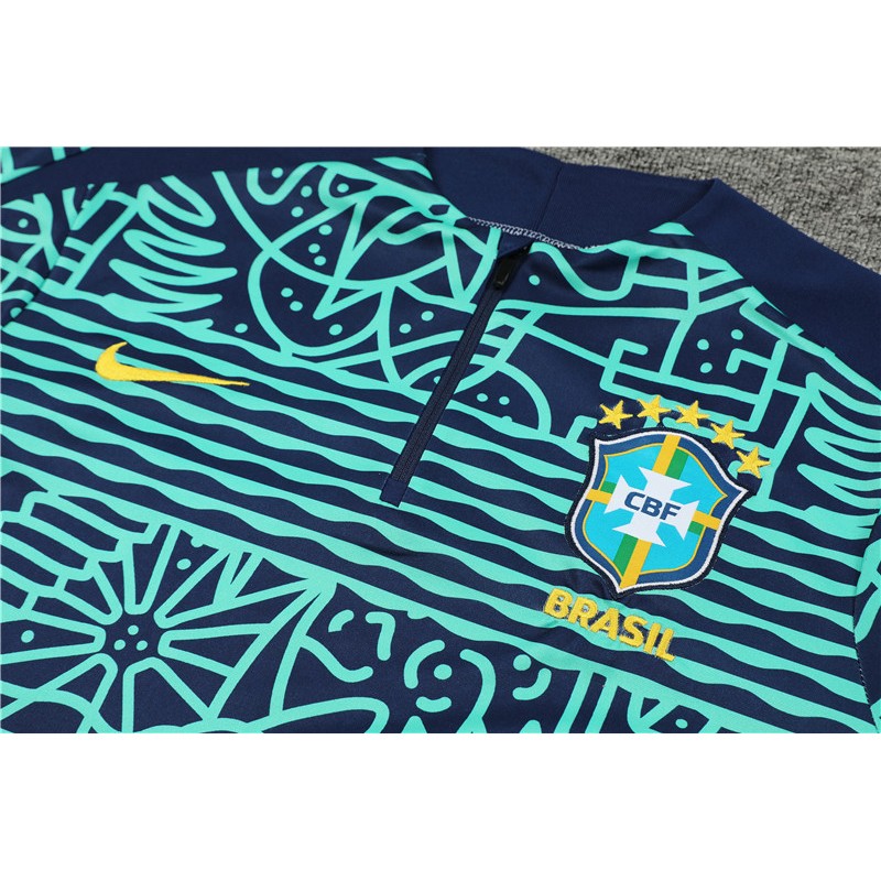 Brazil Tracksuits Long Sleeve Soccer Training Uniforms Green Camouflage