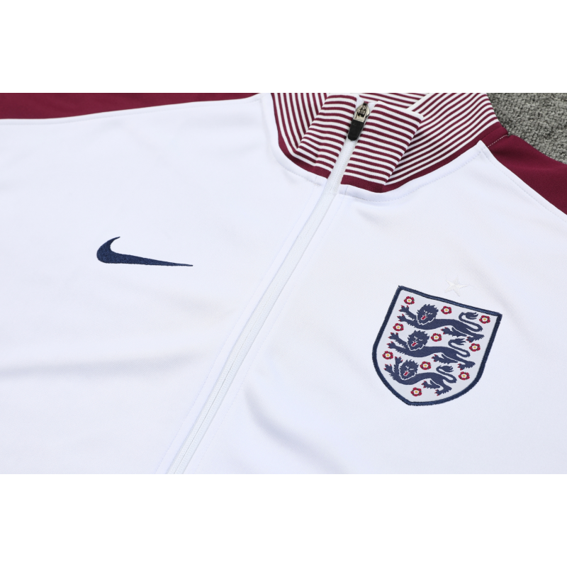 England Full Zip Jacket Long Sleeve Soccer Training Coat White